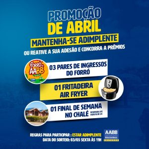 Ótima chance: Mantenha-se adimplente no mês de abril e concorra a prêmios