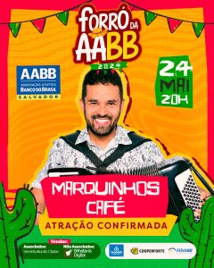 O sanfoneiro Marquinhos Café acaba de ser confirmado como atração do Forró da AABB, evento que em 2024 acontece no dia 24 de maio. Marquinhos compõe a grade de artistas que se apresentarão no palco principal do evento ao lado de Adelmario Coelho e da banda Fulô de Mandacaru. No coreto do Forró da AABB, haverá revezamento de apresentações entre a DJ Preta e a banda Zé de Tonha.
